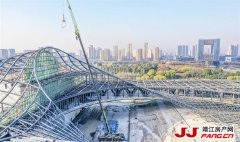 昨天,靖江市文化中心建设工地西南角,施工人员用75吨的汽车吊将一块块玻璃吊装至指...